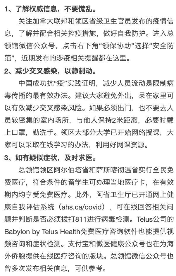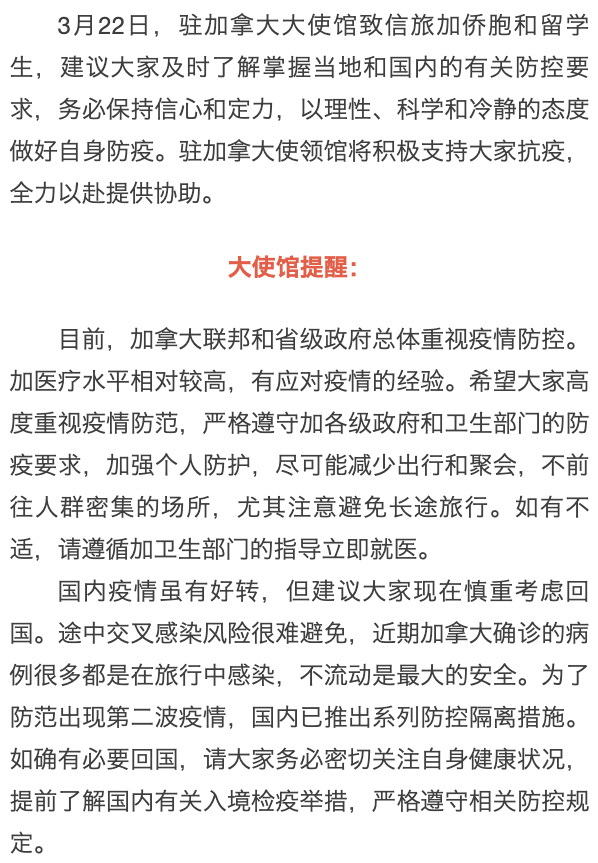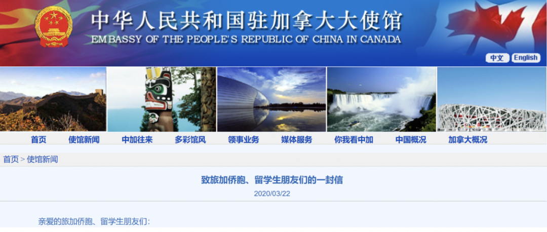 加拿大:驻加拿大大使馆致信留学生 呼吁保持信心和定力
