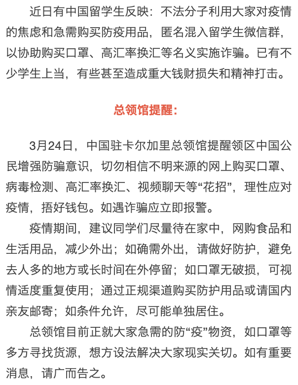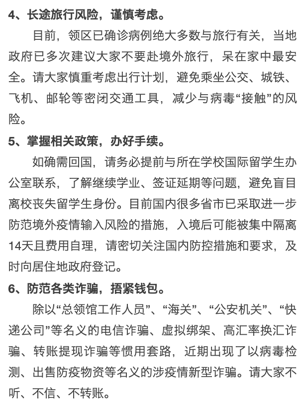 总领馆提醒: