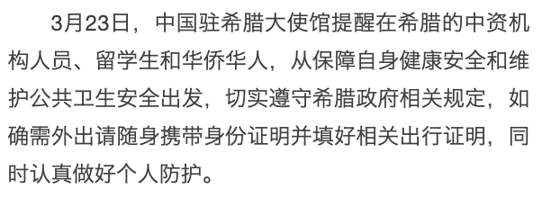 希腊:政府发布出行禁令 驻希腊大使馆提醒遵守规定