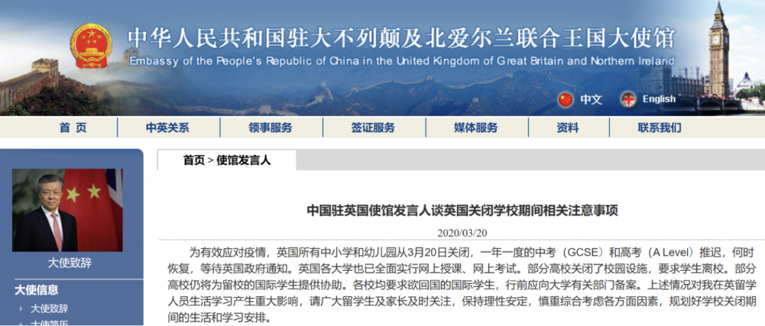 英国:学校关闭中高考推迟 驻英国大使馆提醒留学生做好学习安排