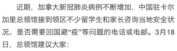 加拿大:驻卡尔加里总领馆提醒留学生谨慎考虑长途旅行