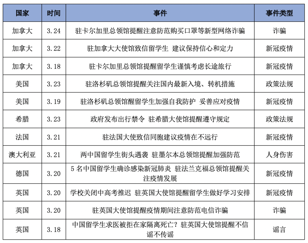 中国留学生安全通报安全事件汇总
