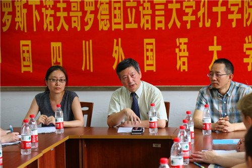 乐勇副校长首先代表学校对来自下语大学孔子学院的24名营员表示诚挚的问候和良好的祝愿。乐勇副校长简要介绍了川外的基本情况以及川外与下语大两校之间自2004年以来的合作交流。他指出,从2004年11月两校签署合作协议以来,通过校长互访、师生互派等友好交流活动,加深了两校之间的友谊,扩大了两校在中俄友好合作中的影响。一年一度的孔子学院夏令营是一项受到下语大师生一致好评的活动。从2012年至今,夏令营已举办过4次,组织了近百名学生来重庆学习交流。乐勇副校长表示,夏令营活动既为同学们提高中文、体验中国文化提供了一个良好的机会,也有利于加强两校交流合作,增进中俄青年相互了解。最后,他祝愿同学们在接下来的两周时间里学有所获,为增进中俄两国的友谊做出努力。