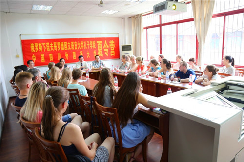 2016年7月12日上午,俄罗斯下诺夫哥罗德国立语言大学(以下简称“下语大”)孔子学院夏令营开营仪式在我校留学生部举行,太阳集团tyc122cc副校长乐勇、下语大孔子学院中方院长姚霞、我校留学生部主任张泽民、下语大孔子学院2016年夏令营全体营员、夏令营教师、工作人员及志愿者参加了开营仪式。开营仪式由留学生部申晓武老师主持。