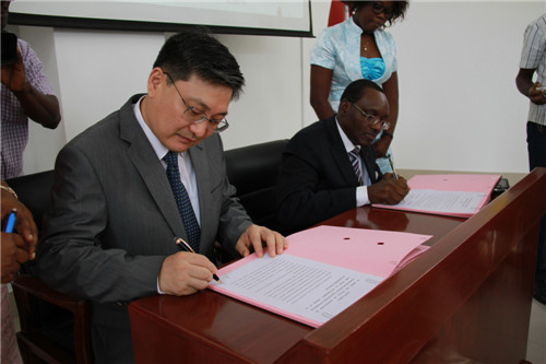刘豫锡大使与多哥高等教育与科研部长布鲁姆签字现场