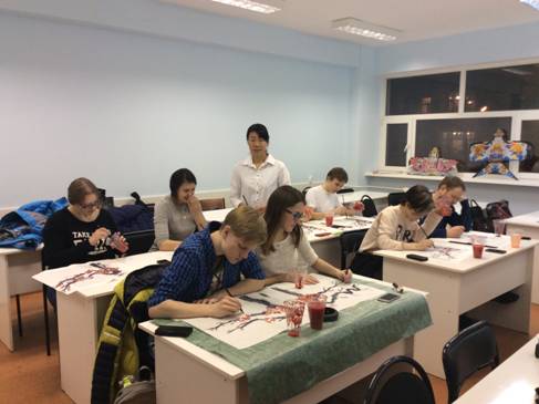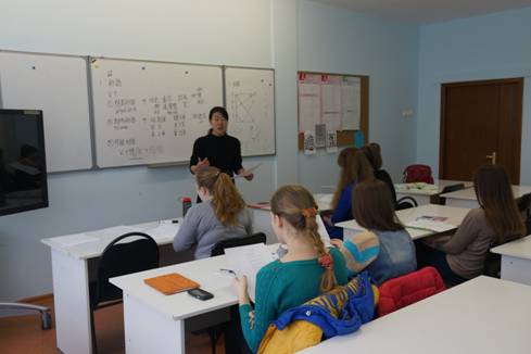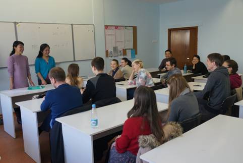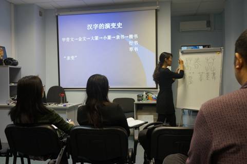 在给学生们教授语言课和文化课的同时,钟彩虹老师还给孔子学院的汉语教师们做了汉语专业知识的培训讲座,包括词汇、汉字、语言和中国文化。与孔院中方院长姚霞老师一起参与听课事宜,与老师们分享汉语教学心得,并就俄罗斯学生学汉语的难点等问题与老师们做了深入探讨。