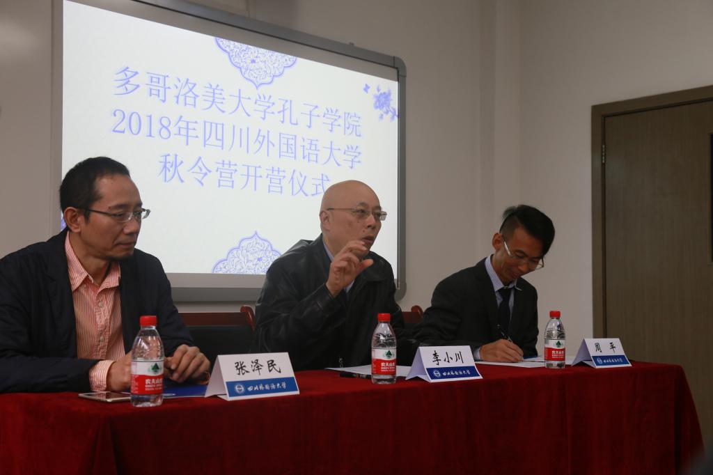 李小川副校长代表学校向参加秋令营的营员表示欢迎。他希望通过本次秋令营的教学活动和文化活动,同学们可以感受山城重庆的独特魅力,体验独特的巴蜀文化,在语言和文化方面获得较大的进步和较多的收获。