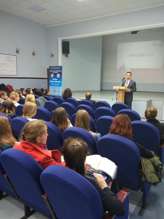 随后,胡登全教授为孔子学院师生开展中国姓名文化的讲座。