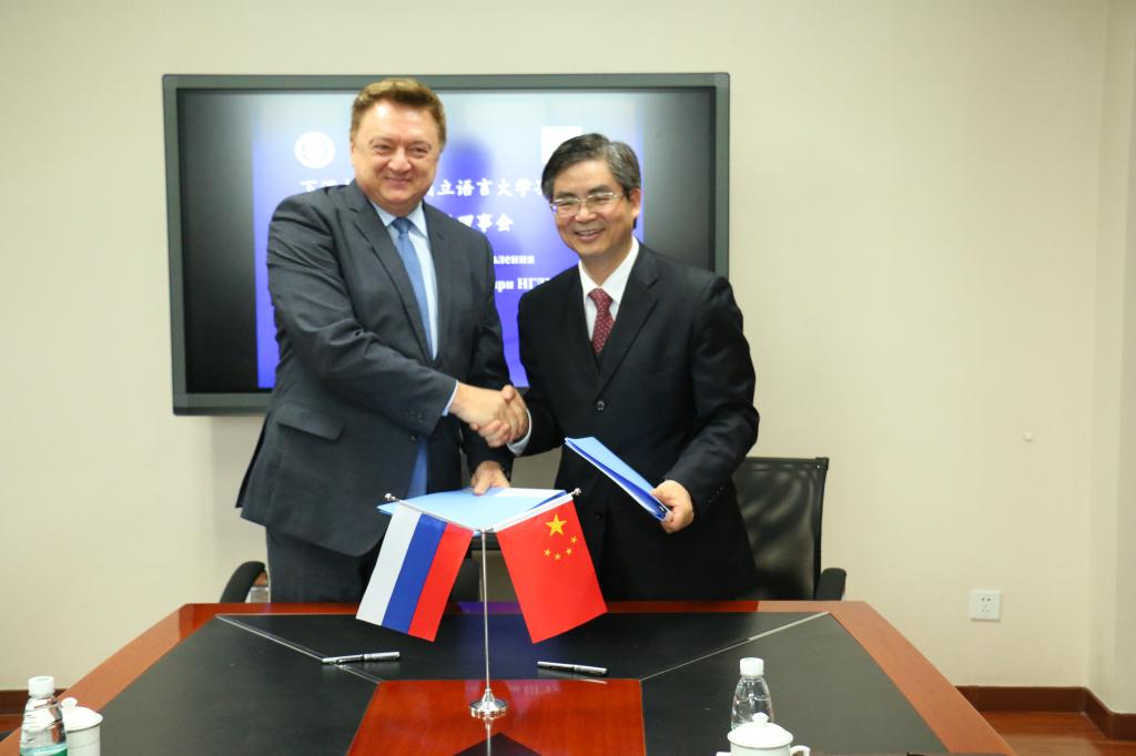最后,两校校长续签了孔子学院执行协议,双方互赠礼物并合影留念。参加会议的还有孔子学院中方院长姚霞,我校留学生部主任张泽民,俄语系党总支书记杨俊、主任徐曼琳,国际合作与交流处副处长张幼斌等。