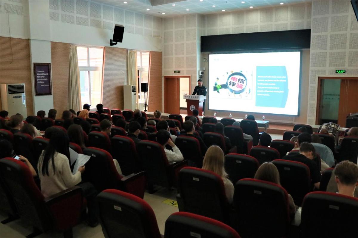 为进一步提高外籍师生的安全防范意识与自我保护能力,10月22日下午,学校国际合作与交流处联合童家桥派出所,在东区国际大厦1314教室开展了2025年秋季学期外籍师生安全教育讲座。讲座围绕外籍师生可能遇到的诈骗陷阱、校园管理困惑及法律风险,通过真实案例剖析与互动问答,深入浅出地普及了安全知识,有效提升外籍师生的风险应对能力。本次活动共吸引70余名外籍师生参与。