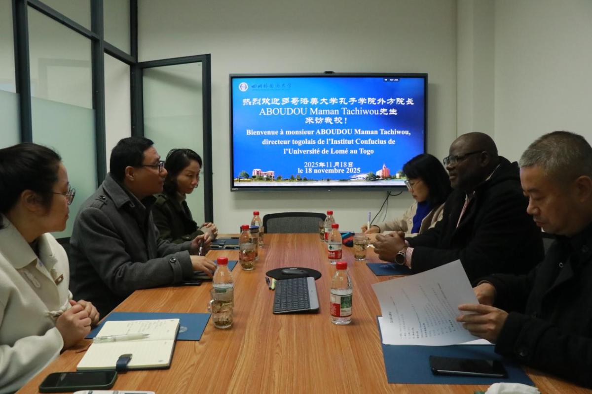 苟朝莉代表学校对艾布多院长的到访表示诚挚欢迎,并对其长期致力于孔子学院工作、推动中多人文交流所作出的贡献致以衷心感谢。她指出,洛美大学是首所与川外合作共建孔子学院的高校,我校与洛美大学之间的交流合作以及孔子学院的持续发展,对川外具有特殊重要意义。她希望以此次访问为契机,进一步加强现任院长与继任院长的沟通,做好孔子学院工作衔接,保障孔子学院各项事务平稳过渡。