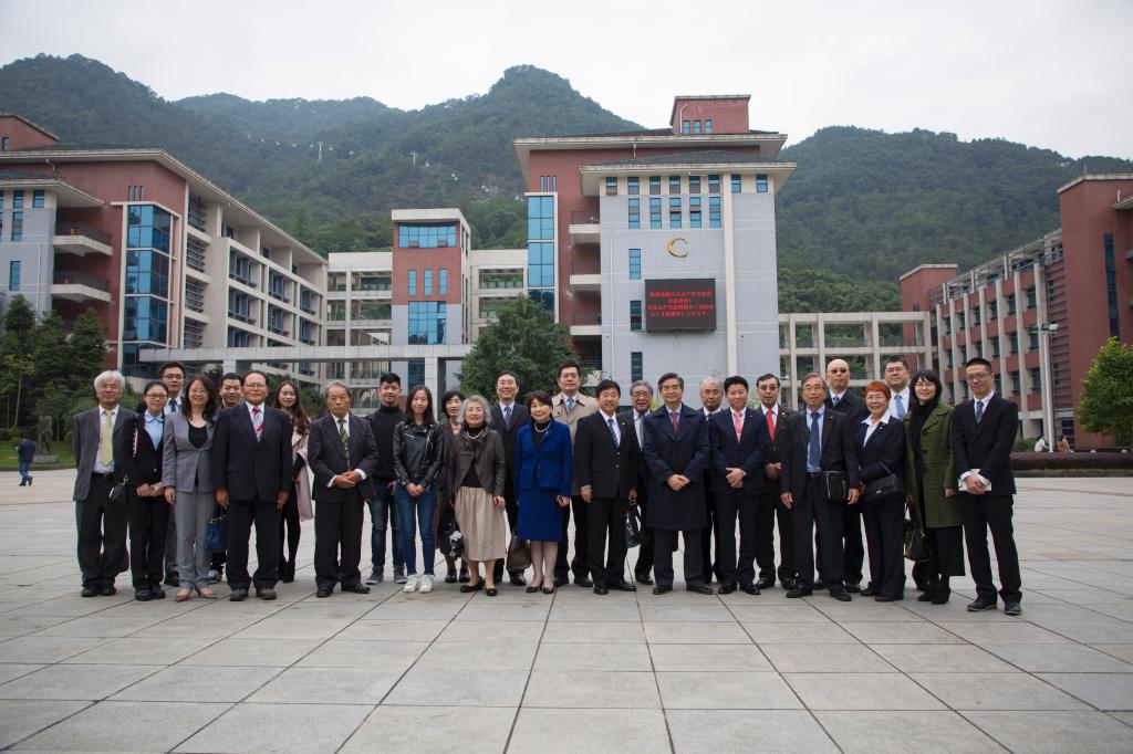 随后,代表团一行在西区行政楼C118与我校师生进行交流。会中,李克勇对水户市访问团的到来表示了热烈的欢迎,介绍了我校日语专业的发展、师资队伍的建设、以及我校与日本各大高校的合作交流。此外,李克勇还提到了中国儒学者朱舜水与日本水户藩主德川光国(又名水户黄门)的千古交谊,并向访问团的友人们推荐了重庆的特色美食。他希望在“一带一路”的蓝图下,双方的友好合作关系能够更进一步。高桥靖市长在发言中介绍了水户市的人文地理环境。他表示,明年是日本明治维新150周年,后年是水户市建市130周年,都将会举行大型的庆祝活动,非常期待我校师生前往访问。由于儒者朱舜水和水户的渊源,日本成立了“水户学”学派。中日两国的交流历史源远流长,高桥市长希望成为两国的友好交流桥梁,为双方文化交流与合作作出贡献。随后,双方代表就中日文化差异、中日大学生就业情况、中日校园生活差异等进行了友好交流。交流中,我校日语系学生代表积极发言,体现了我校日语专业学生的风采。代表团对我校日语专业的教学成果给予了高度评价。会谈结束后,双方交换纪念品并合影留念。