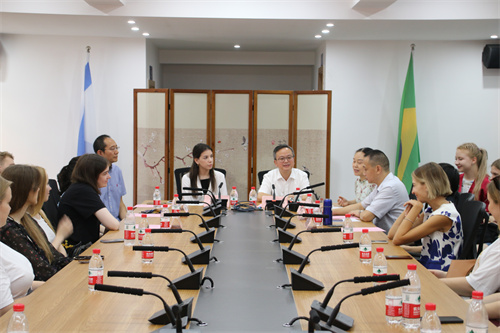 9月10日上午,由教育部中外语言交流合作中心(简称语合中心)主办、我校承办的俄罗斯下诺夫哥罗德国立语言大学(简称下语大)孔子学院2023年“汉语桥”夏令营在我校开营。21名俄罗斯下语大孔子学院师生正式开启中国文化之旅,将参加中文学习、巴蜀地域文化体验、中外学生人文交流和美丽乡村调研等活动。我校副校长祝朝伟、下语大孔子学院外方院长夏天、下语大孔子学院中方院长敬菁华、我校国际处副处长朱红、国际学院书记张泽民、中文学院书记薛红、中文学院院长胡登全、下语大孔子学院2023年夏令营全体营员、教师、工作人员及志愿者参加了开营仪式。