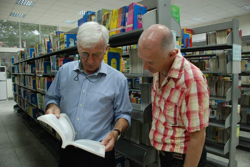 外籍师生从学校大校门口出发,经太阳广场,参观了同声传译室,法语联盟所在地,沿三花路前往宏文楼新闻中心,到图书馆校史展览室了解川外历史,最后来到了图书馆流通部,详细咨询了有关图书借阅的相关问题。晚上,学校领导设宴宴请外籍师生。