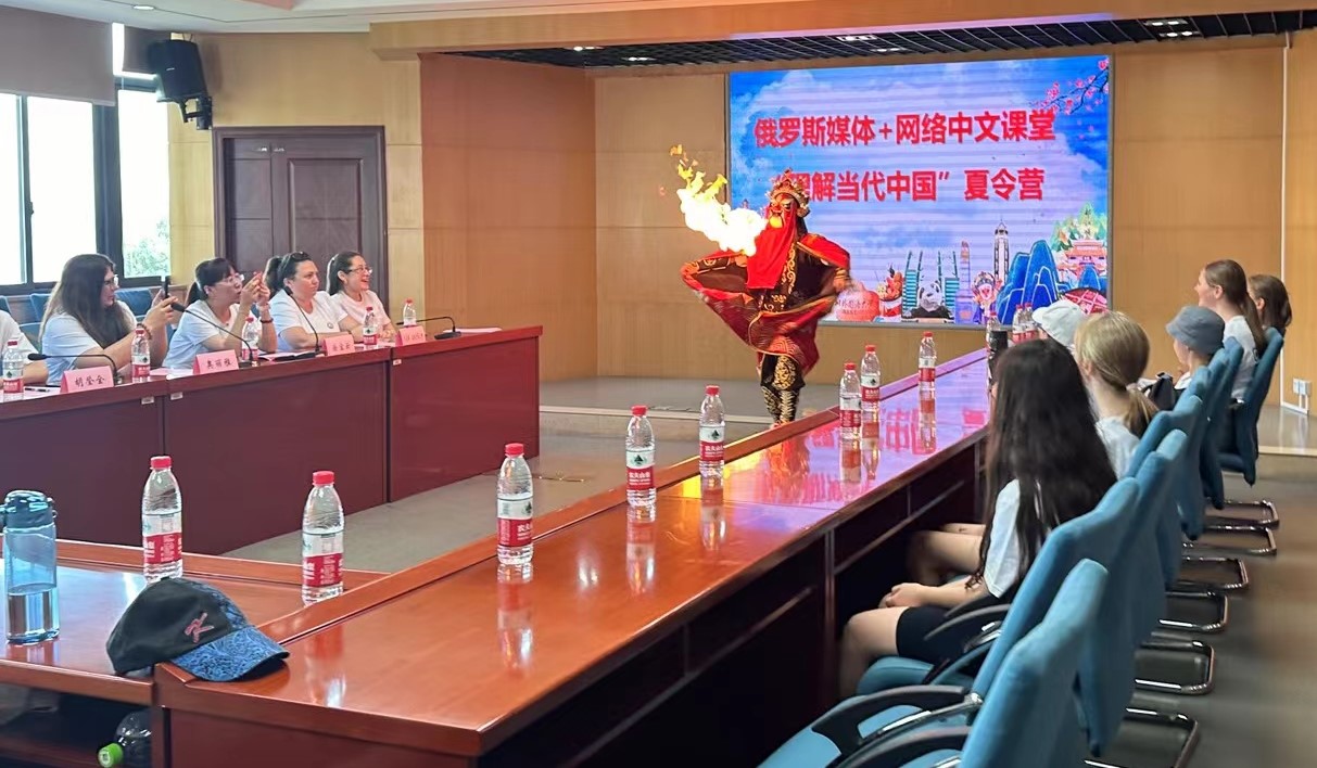 8月7日上午,由我校和俄罗斯媒体+网络中文课堂联合主办、我校中国语言文化学院承办的俄罗斯媒体+网络中文课堂“理解当代中国”夏令营正式开营。21名俄罗斯媒体+网络中文课堂师生正式开启中国文化之旅,将参加中文学习、地域文化体验、美丽乡村调研和中外学生人文交流等活动。中国语言文化学院院长胡登全、党总支书记薛红、媒体+网络中文课堂负责人徐宝云,俄罗斯548教育中心负责人奥丽雅、俄罗斯私立学校负责人朱莉娅•波格丹诺夫娜、夏令营全体营员、工作人员参加了开营仪式。