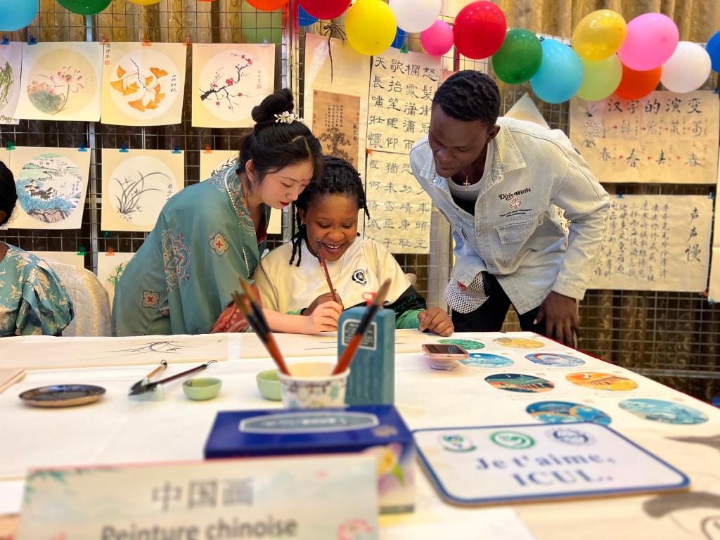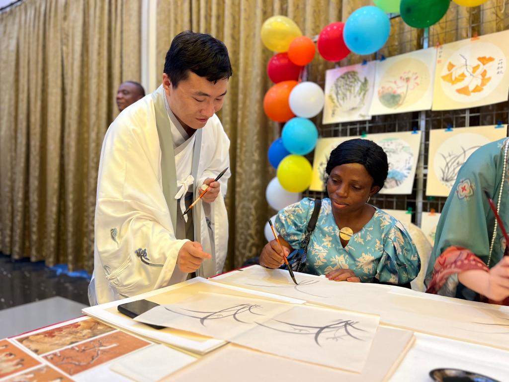 在书画展台,嘉宾们跃跃欲试,纷纷拿起文房四宝,在孔院老师的指导下,写汉字,绘竹兰。不同书法字体之间线条的迥异,中国画几笔水墨营造的深远意境,都使得大家感受到中国传统文化的无穷魅力。