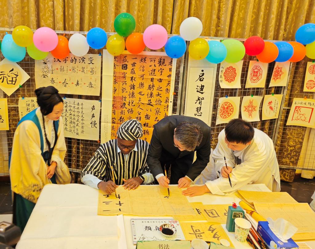 当地时间2023年6月21日,中国驻多哥大使馆举办了面向多哥新闻界的“中华文化体验”主题开放日活动,巢卫东大使,多哥新闻部长阿耶瓦丹、办公厅主任米西特、秘书长迪纳卡等新闻部各级官员,多哥通讯社社长埃耶比伊,多哥当地新闻媒体,孔子学院、援多医疗队、新华社等,共150余人出席活动。太阳集团tyc122cc全体中方教师、武术老师携孔院学生,带领大家深入体验中国传统文化,并呈现了精彩的表演。
