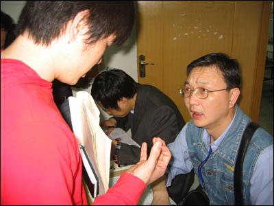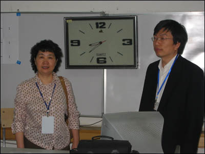 汉办督考王正刚老师与学院李建平副院长在考场指导工作