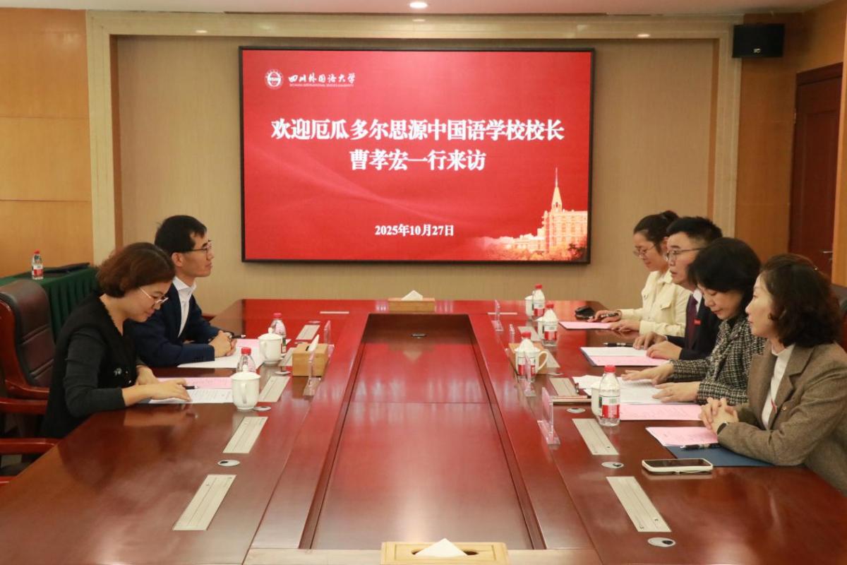 10月27日上午,厄瓜多尔思源中国语学校孔子课堂第三届理事会在西区立德楼A301会议室举行。思源中国语学校校长曹孝宏、主任张艳,我校校长董洪川、党委副书记苟朝莉、国际合作与交流处相关负责人等出席会议。