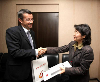 | 2010年12月2日,法国图卢兹大学副校长Laurent Grosclaude一行四人访问我校。党委副书记、副校长李建平代表学校欢迎客人并与客人进行座谈。 李建平向客人扼要介绍了川外的历史及现状,尤其是法语教学及我校与法国高校交流情况,表示川外愿意与图卢兹大学开展互赢的合作项目。 Laurent Grosclaude指出,图卢兹和重庆是友好城市,图卢兹大学将其在亚洲地区的工作重心放在重庆,希望在两市之间开展更加广泛的教育合作交流,尤其是高层次人才联合培养。 明年3月,图卢兹大学将派出9人代表团访问重庆。Laurent Grosclaude副校长此次来访也是为了明年的访问做准备。 国际关系学院院长肖肃、法语系党总支书记杨少琳、国际教育学院法国项目负责人大卫及国际处处长张泽民参加了座谈。