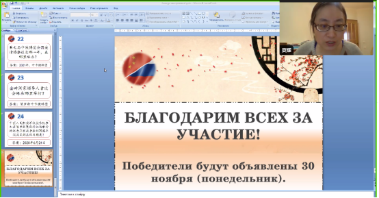 比赛结束后,下诺夫哥罗德国立语言大学孔子学院中方院长姚霞致辞,她表示近年来孔子学院在汉语人才培养和文化活动开展方面颇有成效。其次,与会者评委对本次大赛进行了点评。下诺夫哥罗德国立语言大学孔子学院外方院长安娜·谢尔盖耶夫娜对本次新冠病毒疫情下举办的线上演讲大赛给予了高度评价,对不同级别选手的出色表现大加赞赏。