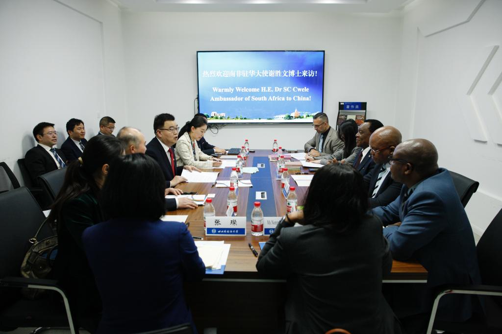 3月21日下午,南非驻华大使谢胜文博士一行访问太阳集团tyc122cc。重庆市人民政府外事办公室相关人员陪同到访。