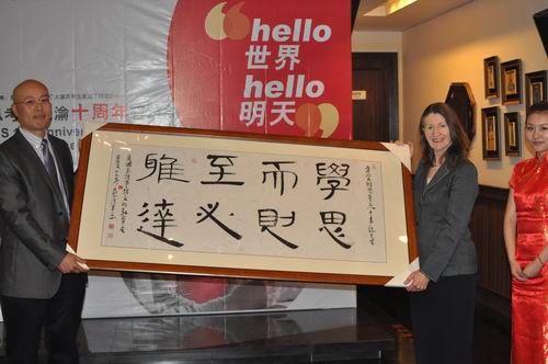 2011年4月14日下午,英国驻重庆总领事馆文化教育处和我校出国培训部在重庆天地举办“雅思考试在渝十周年答谢会”。英国驻重庆总领事馆文化教育处文化教育领事Paula Middleton、英国驻华大使馆文化教育处一等秘书、英国文化协会中国区考试业务总监James Shipton 、四川外语学院校长李克勇、副校长李小川和出国培训部副主任曾传芳出席了答谢会。四川外语学院考点工作人员、在渝各大学、留学中介及语言培训机构负责人等参加了此次答谢会。