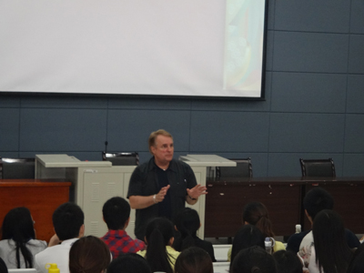 | (杨栩昕供稿) 2011年5月30日,应科研处和国际关系学院国际问题研究所邀请,美国学者Blaine David Benedict在西区B栋报告厅为我校师生带来了一场有关奥巴马对华政策及中美关系的精彩讲座。讲座由国际关系学院副院长任虎军教授主持,全校200余名师生到场聆听。 Benedict教授现为美国霍顿大学政治学—国际关系教授、佛罗里达三一大学副校长、南京大学富布莱特访问学者。他用幽默风趣的语言生动地为同学们讲解了美国对华政策及中美关系。Benedict教授从自我介绍开始,以语言学习为切入口,与同学们拉近距离,调动起大家的兴趣,为讲座营造了良好的气氛。接着Benedict教授对比了美国前总统小布什与现任总统奥巴马的外交政策和对华政策,并着重讲解了中美关系的重要性。之后的交流环节,同学们纷纷举手提问,Benedict教授都耐心地一一解答。讲座结束后,同学们对Benedict教授的精彩演讲报以热烈的掌声以表示感谢。 整场讲座拓展了同学们的国际关系及外交学知识,特别是Blaine David Benedict教授开放、独特、幽默的讲座方式给同学们留下了深刻印象。