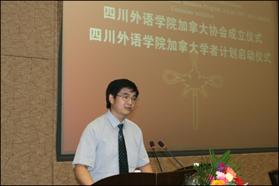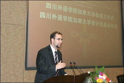 随后,李克勇校长、李建平副校长、戴尚安领事出席了学生社团“加拿大协会”成立仪式暨“加拿大学者计划”启动仪式。李校长、戴领事发表了热情洋溢的讲话,并用汉、英、法三种语言祝愿双方的进一步合作取得成功。