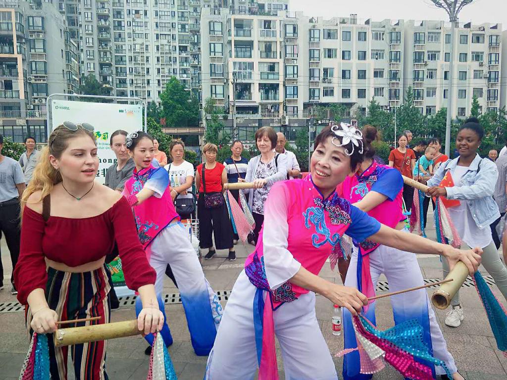 2019年6月6日上午,我校3名外教及23名留学生应邀参加由重庆市委宣传部、市文化和旅游发展委员会、巴南区委、区人民政府主办,在巴南区界石镇新界商街举行的“我们的节日·端午”——巴南区文化和自然遗产日·老外@ChongQing体验非遗2019活动。