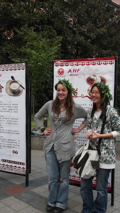 | 为丰富同学们的校园文化生活,巩固中文系对外汉语专业和留学生部的合作伙伴关系,增进外国留学生与中文系同学的友谊,加强中外文化的交流与融合,由四川外语学院中文系主办的中外文化交流系列活动于2011年3月21日正式拉开帷幕。 中文系团总支学生会经过精心筹备,围绕着中外文化交流这一主题设置了语伴征集、语伴见面会、国学图书博览会、灯谜、唐朝传统文化知识路演、国学知识专题讲座和音乐Party等系列活动。其中唐朝文化知识路演在本次中外文化交流系列活动中独树一帜,由中文系学生和外国留学生组成的优秀语伴,经过培训与磨合,按照不同的主题对中国文化进行了深入详实的解读。中文系的付茂轩同学携二胡独奏清新登场,乐声悠扬缠绵;留学生部韩国学生提摩太的吉他弹唱,一曲《传奇》舒缓柔情,路过的同学纷纷驻足观看,赞不绝口。 中文系举办的这一系列活动充满了文化的碰撞,洋溢着欢乐的气氛,中文系同学刘伊勰说:“我们和语伴一起吃火锅,向他们解释菜名,教他们怎么用筷子,非常愉快,我喜欢教他们说汉语。”韩国留学生提摩太也十分赞同:“参加Party很高兴,因为我和中国朋友们一起玩,我觉得那天的时间很宝贵。排练时雨灿说我的发音不太好,声调有时候有错误,所以他教我发音和声调,教得很好。因为只是学习很无聊,但是一起交流、玩儿、准备表演,对我的汉语水平提高有很大帮助。如果以后还有这样的活动,请再叫上我。” 此次中外文化交流活动,以多样的活动内容,丰富的活动形式,弘扬了中国传统文化,架起了沟通的桥梁,同时也促进了不同文化间的交流。它既是提高留学生汉语水平的良好契机,也是展示留学生汉语水平的最好方式。中文系同学也从中体会到了对外汉语专业的乐趣所在,激发了同学们的学习热情。 我校留学生部是中文系的教学实习基地之一,中文系大批高年级的同学们已经走进了留学生们的课堂,进行旁听和交流。此次活动虽然已经结束,但是它提供了一个很好的契机和交流的平台,使中文系同学和外国留学生之间的交流继续进行下去。