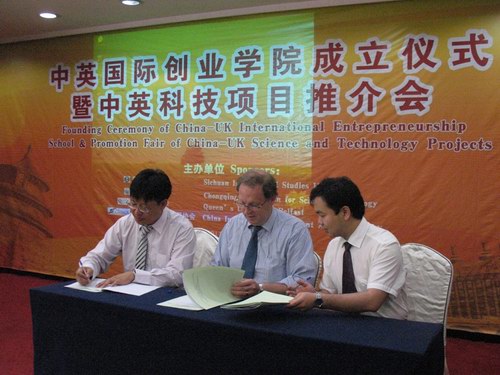 | 2011年7月9日上午9点,来自四川外语学院、英国女王大学、全英中国创业发展协会、重庆市科协、英国总领馆重庆领事馆的中外嘉宾齐聚两江丽景酒店二楼南山厅,举行中英国际创业学院成立暨揭牌仪式。整场仪式由川外国际商学院院长助理李江主持。 首先,来自英国总领事馆的教育领事Paula Middleton发言。她充分肯定了中英国际创业学院对于中英在科技创新研究、科技创业方面的重大意义,并且指出重庆作为一个区域性交流平台,由政府、企业和高校三方推动与英国大学、地方政府和相关企业建立长期合作项目将有助于促进重庆两江新区的经济发展。 之后举行中英国际创业学院成立签字仪式暨揭牌仪式。中英国际创业学院成立协议由四川外语学院国际商学院院长杨柏、英国女王大学管理学院院长Richard Harrison教授和全英中国创业发展协会负责人熊榆博士共同签署,随后举行了揭牌仪式。仪式过后,四川外语学院副院长李小川、Richard Harrison教授和熊榆博士分别发表了热情情洋溢的祝辞,纷纷表示中英国际创业学院的成立将进一步推动英国和重庆的合作,有助于促进重庆地区及西部的创业教育发展。 中英国际创业学院,由四川外语学院、英国女王大学、全英中国创业发展协会联办,旨在向中国大陆引进英国先进的创业理论和实践,同时促进中英两校就业、创业交流和专业化培训,鼓励和支持中国当代青年大学生创业,创新就业渠道,并致力于开发一套能够有效提升回国就业的中国留学生就业技能的辅导模式,同时为海归高科技人才发明专利提供一个国际化的孵化平台,吸收风险投资,将发明创造转变为现实的生产力,推动重庆两江新区的经济发展。 创业学院将提供短期培训和硕士教育,为国内的创业者特别是大学生引进传授英国先进的创业理念和实践经验。教师团队由国内大学的精英、英国女王大学的顶级教授和当地的企业家组成,创业教育将结合市场需求,开设投融资、商业谈判、商业策划和计划书撰写、市场营销、商业推广等一系列实用的专业课程,学成者将成为创业团队中的领导者和管理者,帮助有科技创新项目专利的人士成功创业,将智力、技术成果转变为现实生产力,从而推动中国大陆地区的技术创新及创业的发展。 中英国际创业学院将依托四川外语学院招生,报考学生必须具备本科以上的文凭,短期培训的合格者将获得英国女王大学颁发的证书,申请创业学硕士学位的学生在英国学习一年,合格者将获得英国女王大学的创业学硕士学位。 中英国际创业学院的成立开创了中国将创业学位引入高等教育的先河,对高等教育和高校学生创业、职业发展将是划时代的举措,其必将极大地提升四川外语学院在国内和国际上的地位,推动川外的国际化教育水平,同时使川外能够以崭新的姿态在两江新区的经济建设中扮演重要角色。 国际商学院 2011年8月