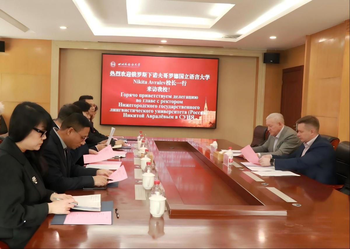 1月9日下午,俄罗斯下诺夫哥罗德国立语言大学校长尼·弗·阿夫拉廖夫(Nikita Avralev)一行访问我校,出席下诺夫哥罗德国立语言大学孔子学院第十二届理事会。校长董洪川、国际交流与合作处、计划财务处及俄语学院相关负责人参与会谈。