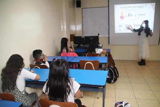 Liceo Matovelle教会学校学生学习汉语拼