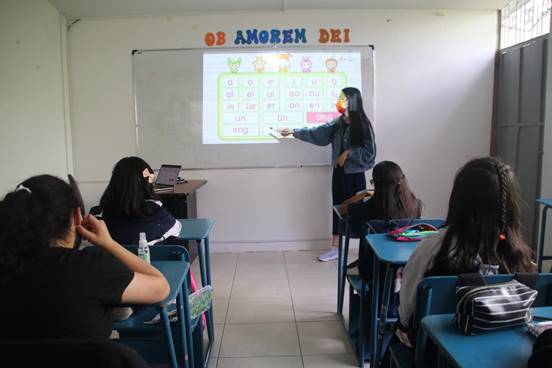 Liceo Matovelle教会学校师生问候彼此