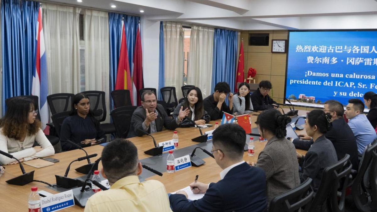 冈萨雷斯会长对我校的接待表示感谢。他指出,推进中古高校交流合作、推动两国地方与地方的交流,有助于加深两国友谊。他表示,川外和古巴高校和研究机构间有良好的合作基础和广阔的合作空间,他将积极推动双方合作交往。他称赞川外办学有特色、办学历史久,表示希望了解更多的留学生招生政策,以便为古巴学生提供更多到川外学习交流的机会,同时,也邀请川外学生前往古巴学习,实现双向的文化与学术交流。