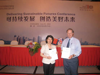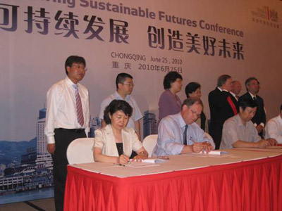 | 2010年6 月 25 日,重庆市外经贸委、英国贸易投资总署在重庆国贸豪生酒店共同举办“可持续发展、创造美好未来” 研讨会。率团来渝的英国前副首相约翰·普雷斯科特出席会议并发表演讲,重庆市外经贸委副主任李世蓉以“重庆—继续前行”为题发言。共有二十余家英国企业参加了研讨会。 研讨会期间,中英双方还签订了可持续发展城市行动计划第二阶段合作协议,计划在环保、土壤修复、城市规划与改造、建筑节能设计及教育等方面继续加强合作。 我校副校长李建平教授应邀出席会议,并代表学校与英国女王大学管理学院院长Richard Harrison教授签署了四川外语学院国际商学院·英国女王大学管理学院合作协议。