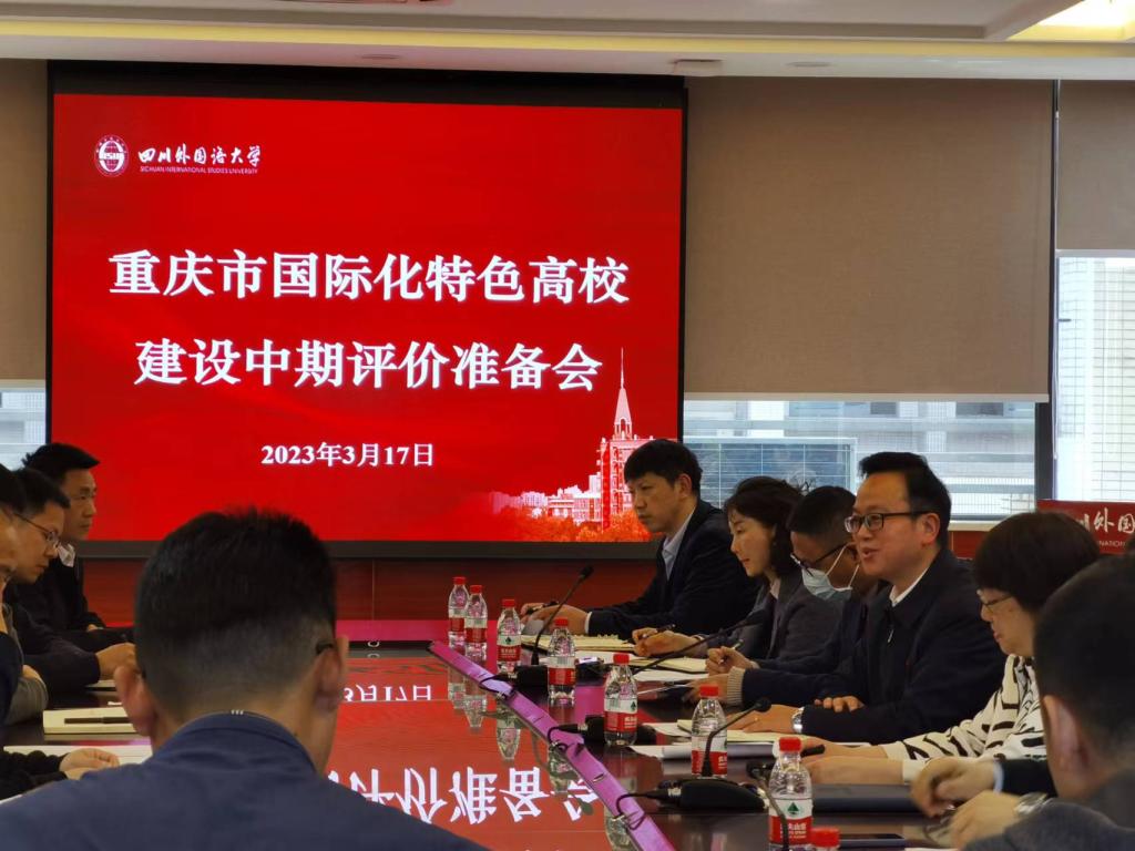 2023年3月17日,我校召开重庆市国际化特色高校建设中期评价准备会,祝朝伟副校长、校内各相关部门及二级学院负责人参会。会议由国际合作与交流处处长张幼斌教授主持。