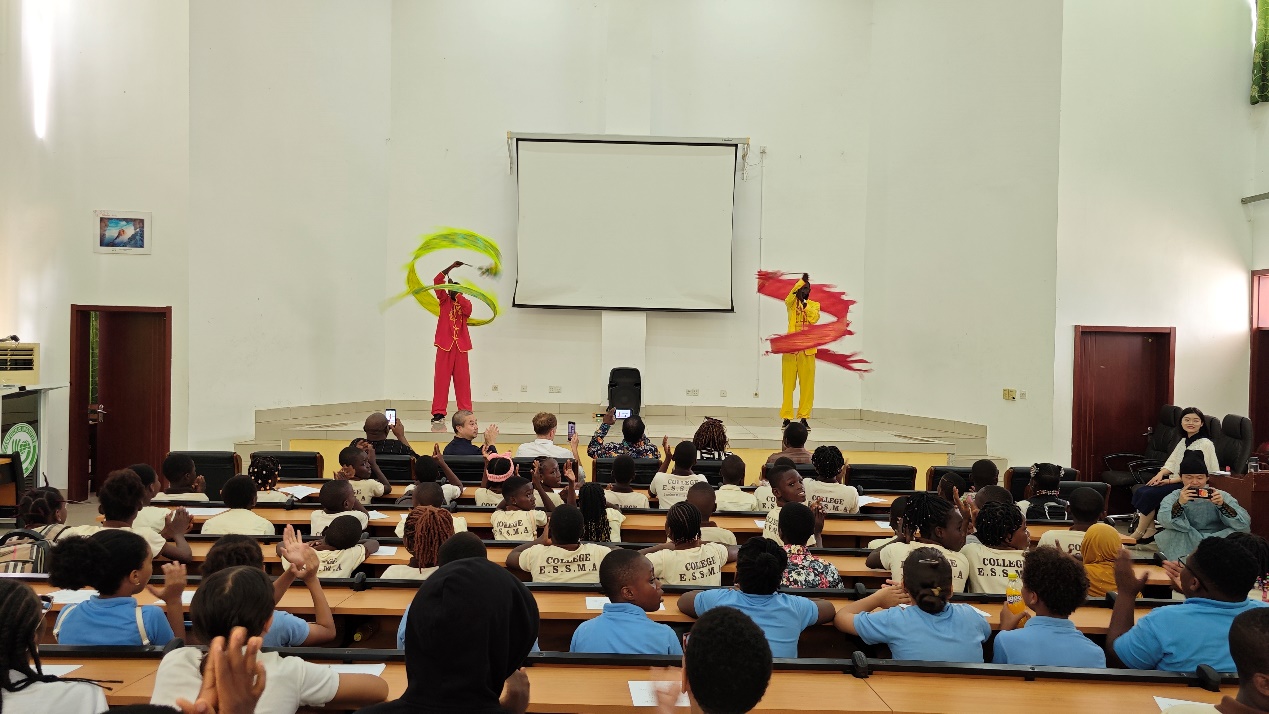 为响应中外语言交流合作中心和中文联盟的号召,迎接第十五个国际中文日,当地时间4月19日,太阳集团tyc122cc举办了2024年“国际中文日”庆祝活动,与往年不同的是,今年的活动特别邀请了E.S.S.M.A.学校和洛美英国学校两个教学点的中小学生代表参加,孔院师生和两个教学点的师生近300人欢聚一堂,共赴文化盛宴。本次活动主要包括文艺表演和文化体验两个环节。