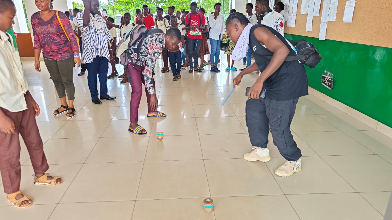 传统游戏体验区是最热闹的区域,孔院为大家准备了丰富多彩的游戏项目,如棋牌、陀螺、毽子等。张亚东老师向同学们讲解各类棋牌的游戏规则,王涛老师指导学生打陀螺、踢毽子、投壶,同学们或两人对弈、或多人混战,玩儿得热火朝天,不亦乐乎!在热闹欢快的氛围中,本次活动圆满落幕。