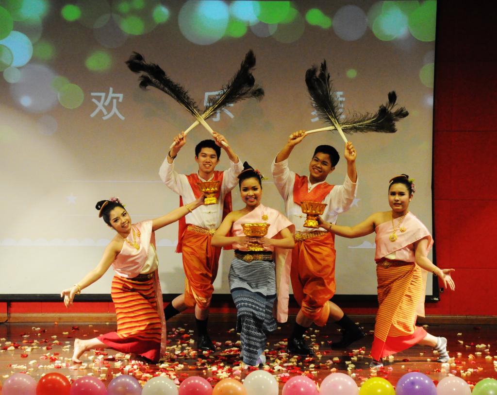 联欢会上同学们精彩的表现赢得了现场观众的阵阵掌声。泰国学生一曲《欢乐舞》拉开了此次联欢会的序幕。泰语、日语及中文版的《童话》展现出了不同语言的魅力。高级Ⅰ班同学改编的《留学生部的日子》,讲述了同学们的相遇相识相知,以及对老师们和学校的依依不舍。吉他弹唱《灰姑娘》,歌曲联唱《等待着你》和《小幸运》,舞蹈《Taki Taki》等节目也给观众留下了深刻的印象。现场抽奖环节更是调动了观众的气氛,共有10名幸运师生获得了此次大奖。