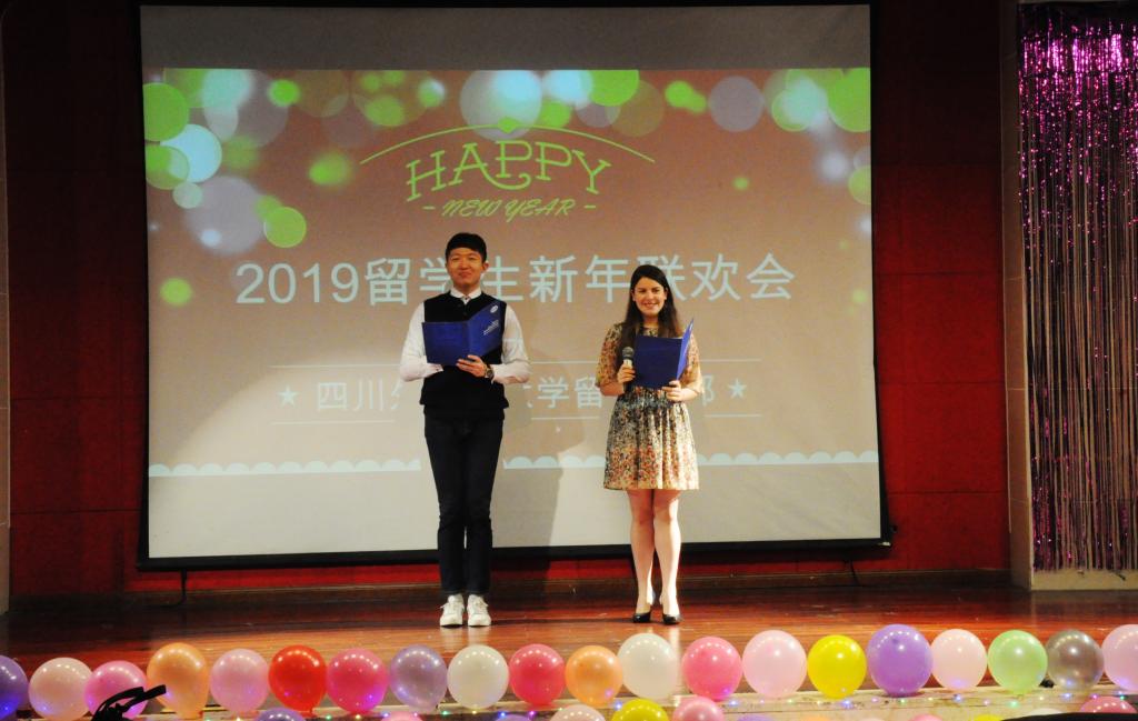 李小川在致辞中代表学校向参加新年联欢会的各位老师、同学表示热烈的欢迎,并致以节日的问候。李小川向留学生介绍了学校开设非通用语学院事宜,欢迎同学们有机会在川外从事相关教学工作。