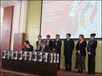3月11日下午2点30分,由重庆市教育委员会、威尔士议会政府、英国驻重庆总领事馆主办,重庆大学协办的“威尔士-重庆教育谅解备忘录签字仪式及大学生知识挑战赛”在重庆大学民主湖报告厅举行。重庆市教委副巡视员胡斌、重庆大学副校长白晨光和威尔士议会政府对外关系部主任盖瑞.戴维斯、英国驻重庆总领事馆副总领事史辛夫、英国文化协会威尔士办公室副主任维多利亚格兰特出席了本次签字仪式并发表精彩讲话。我校外事处处长张泽民受邀出席了本次活动。
