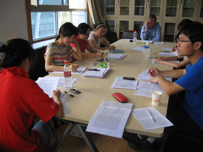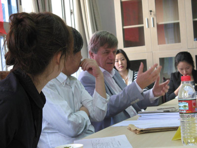 | 应中外文化比较研究中心主任冯亚琳教授的邀请,2010年5月14日至6月30日,德国杜塞尔多夫海涅研究所副所长科特伦德教授来到我校为德语专业研究生进行为期一个半月的讲学,并在5月15日参与了德语专业硕士生的毕业答辩。 在为期一个半月的时间里,科特伦德教授引导德语专业的研究生们学习了19世纪德语文学,2009年诺贝尔文学奖获得者德国女作家赫尔塔·缪勒(Herta Müller)的作品《呼吸钟摆》和海涅的诗集《诗歌集》以及部分海涅的后期作品。课程形式灵活多样,课堂气氛积极活跃。 在19世纪德语文学这一主题下大家分组作报告分别介绍了德国浪漫主义时期,比德迈耶尔时期,青年德意志/三月前文学以及现实主义时期的作家。科特伦德带领研究生们分别阅读了Annette von Drost-Hülshoff的Heide und Moor, Georg Büchner的著名作品《丹东之死》,Gottfried Keller的《乡村的罗密欧与朱丽叶》等作品。 每周二科特伦德教授引导大家阅读2009年诺贝尔文学奖获得者德国女作家赫尔塔·缪勒(Herta Müller)的作品《呼吸钟摆》。在这一部分他选取了书中的重点章节作为教材。每堂课先进行文字梳理,然后组织大家进行探讨。 在最初的三周里大家一起学习海涅的青年时期的诗集《诗歌集》中的名篇《罗蕾莱》,《乘着歌声的翅膀》和《你好比一朵鲜花》等。在之后的两周里大家学习了海涅的部分政治诗,比如《西里西亚织工》,《我是剑,我是火焰》等。在课堂上科特伦德还组织了小型的海涅诗歌朗诵比赛,这更激发了大家对诗歌的理解,同时也唤起了大家对海涅的兴趣。