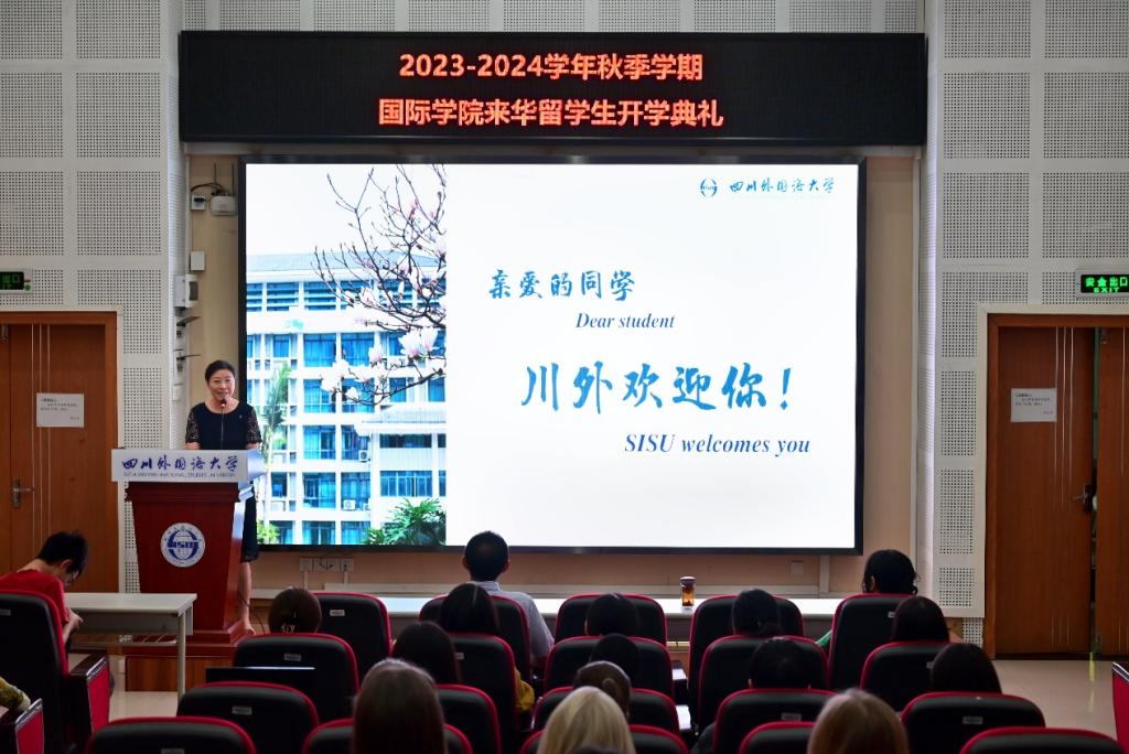 院长曾传芳在致辞中,向不远万里来到中国求学的留学生们表示热烈的欢迎和由衷的钦佩。曾院长提到,留学生们走出国门,来到异国他乡求学,是一件非常有勇气的事;敢于打破隔阂,倾听不同声音,更是体现了国际视野和开放包容的胸怀。希望留学生们学在川外,乐游重庆,知行中国,架起中外文明互鉴的桥梁,共同促进中外文化交流,为构建和谐世界作出贡献。