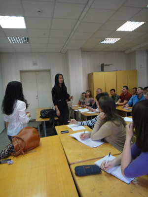 | 自2011年6月6日下诺夫哥罗德语言大学孔子学院隆重揭牌以来,每天想要学习汉语的咨询电话和报名人员不断,9月28日孔子学院正式开办教学。目前一年级已招收115名学生,二年级35名学生。应下语大本校学生的积极要求,孔子学院即将把汉语设为下语大的选修课,目前汉语选修课报名人数也相当踊跃,10月下旬汉语选修课也将如期开办。 为给学生提供更多汉语交流的机会,丰富其学习过程,孔子学院在下诺夫哥罗德国立语言大学定期举办有专题、有主持的“汉语角”活动(时间为每周六12:00-15:00),以学生与老师互动、学生之间互动的方式,让他们在轻松、自由的环境中更好地学习和掌握汉语。10月8日,第一期以“结识”为主题的“汉语角”成功举办,由孔子学院中方院长华莉老师主持,俄方院长安德烈·班果夫和中方老师伍春凤也参加了此次活动。教室里坐满了孔子学院的俄罗斯学生和川外俄语系的学生,华老师与学生间生动有趣的互动活跃了现场气氛,加之生活化的交流内容和即时构造的情境,不仅拉近了汉语和学生之间的距离,使他们能够充分感受到学习汉语的趣味,同时也帮助他们更容易地掌握“鲜活的”汉语。之后俄罗斯学生和川外学生开始了自由交流,现场瞬间沸腾起来,由初次见面的自我介绍,到逐渐展开俄罗斯学生感兴趣的话题。川外学生在与俄罗斯学生聊天的过程中,一边帮助他们巩固已经学过的汉语内容,一边借助俄语阐释,使他们接触和认识更多汉字、单词。交流中学生们认真的态度和想要使用汉语表达自己的强烈“冲动”充分显示出他们对汉语的喜爱。 在本期“汉语角”活动中,孔子学院的学生通过和老师以及川外学生的广泛交流,不仅拓展了自己的汉语知识,而且增进了对汉语和中国文化的了解,有利于进一步学习汉语。同时,在与俄罗斯学生交流的过程中,川外学生也锻炼了自己的俄语口语,提高了俄语表达能力,并且与他们成为了朋友。“汉语角”活动使每位在场的学生受益匪浅,相信接下来的每一期都会同样精彩!