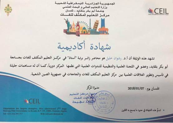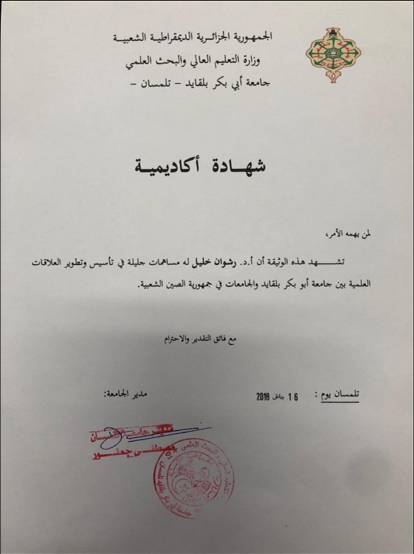 会议期间,纳西玛教授代表特莱姆森大学聘请王睿为特莱姆森大学客座教授、学术委员会委员,同时为表彰他在两校交往中的突出贡献,还授予其感谢信。
