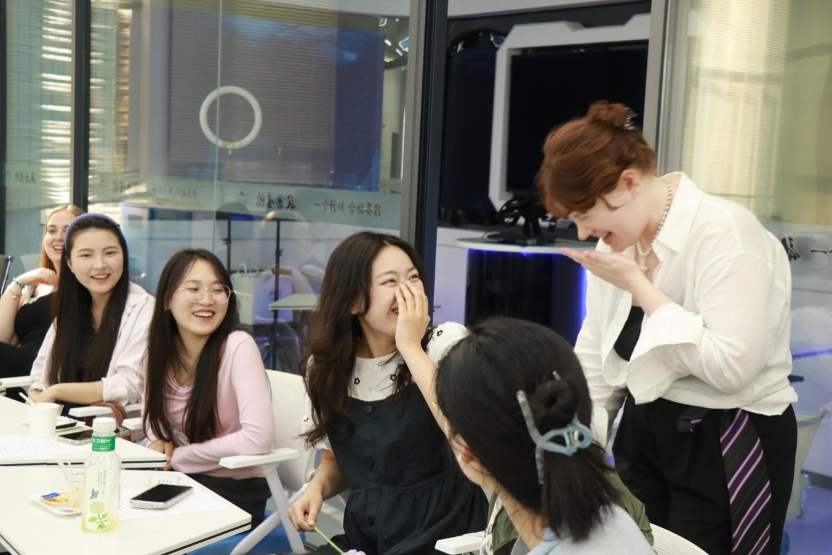 活动创新设置“文化浸润”特色环节。茶歇期间,师生在英式红茶与中国传统茶点的香气中畅谈东西方教育理念;“击鼓传花”游戏环节更成为跨文化交流的催化剂——当《青花瓷》中国风歌曲与美国经典乡村乐曲Take Me Home, Country Roads旋律交替响起,参与者通过即兴答题、方言挑战等趣味互动,亲身体验文明对话的深层魅力。来自苏丹的SAFA同学感慨:“这不仅是一场学术盛宴,更让我们在欢声笑语中感受到文化共生的美好。”