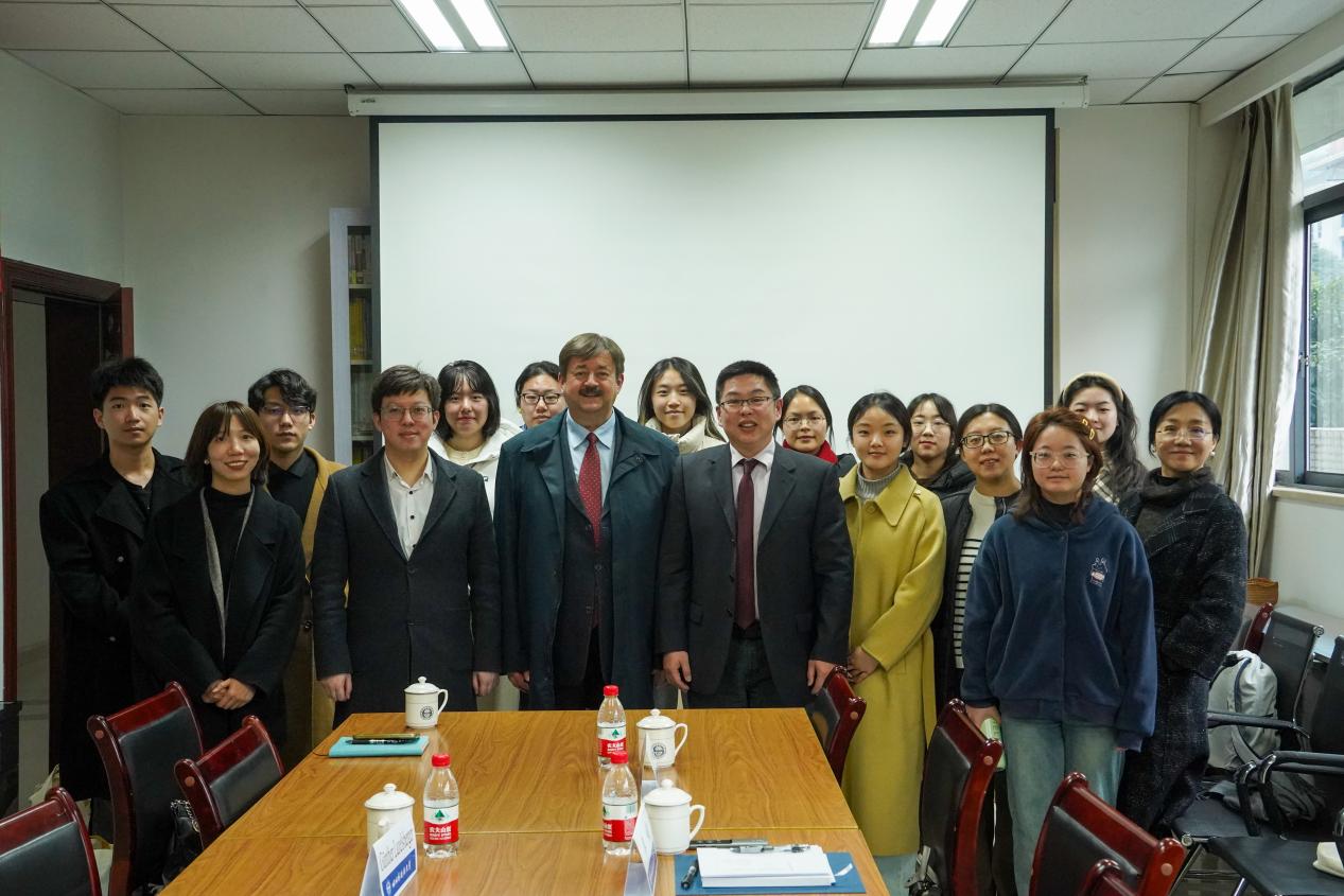 随后,雷君山总领事一行参观了德语学院并与德语学院师生就语言学习、留学交流、实习就业进行了友好交流。