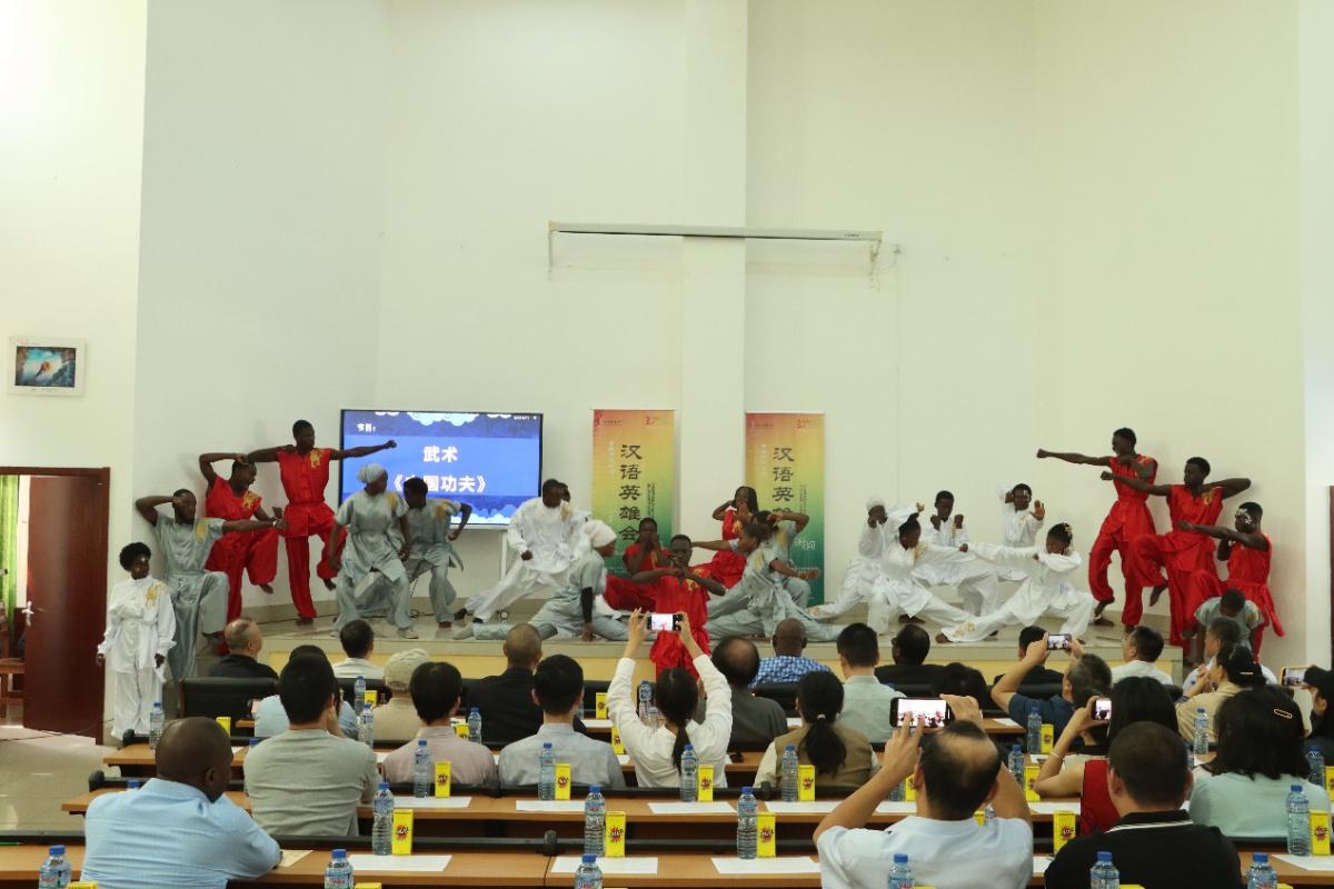 比赛间隙,首届多哥全国“汉语英雄会”中文歌唱比赛决赛的优秀选手为大家演唱了经典歌曲《会开花的云》《乌兰巴托的夜》,孔院学生表演了中国功夫拳法和多哥传统歌舞《BOBOBO CLUB》,中文歌曲悠扬动听,传统功夫刚柔相济,非洲舞蹈热烈劲爆,中多文化在此交流、碰撞,绽放出耀眼的光彩,现场精彩不断,掌声雷起。